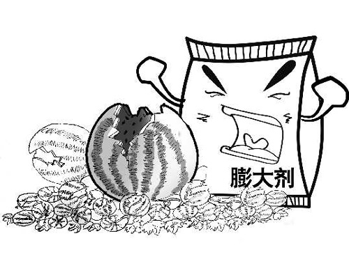 江蘇鎮(zhèn)江丹徒區(qū)延陵鎮(zhèn)大呂村40多畝西瓜大棚,就像布下了“地雷陣”,已結(jié)滿瓜藤的大小西瓜,還沒有成熟就一個個炸裂開來,有的炸得四分五裂,有的炸得像一朵花。其他瓜農(nóng)的數(shù)十畝西瓜同樣開始滿地“開花”。有瓜農(nóng)和專家指出,瓜農(nóng)施用的“膨大增甜劑”是造成爆瓜的原因。 膨大劑,化學名稱叫細胞集動素,屬于激素類化學物質(zhì),對植物可產(chǎn)生助長、速長作用,對人體的危害主要是神經(jīng)系統(tǒng)的危險,能造成兒童腦炎,發(fā)育不良,癡呆等。此外,使用膨大劑后的果蔬味道變淡,吃起來口感不好,也不利于長時間儲藏。 吉林大學軍需科技學院食品質(zhì)量與安全專業(yè)教授徐克成認為:膨大劑按規(guī)范使用是無毒害作用的,但是如果濫用、大劑量使用膨大劑,是有潛在風險的。我國自引進以來,沒有明確的規(guī)范劑量。很多農(nóng)戶為了利益大量施用膨大劑。農(nóng)產(chǎn)品檢驗機構(gòu)不會檢測這項指標。