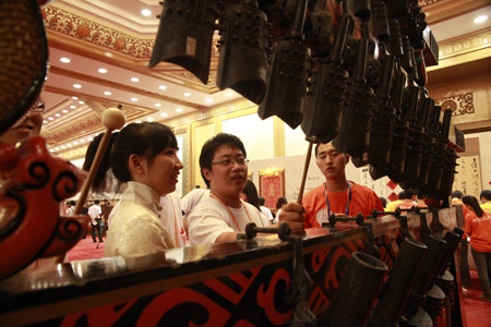 中國臺灣網7月12日消息 今天下午,兩岸萬名青年大型交流主題聯歡活在人民大會堂盛大舉行,將此次兩岸青年交流活動推向最高潮。 此次活動以“兩岸同心、我們同行”為主題,由17家單位聯合舉辦,兩岸眾多青年學子齊聚一堂共襄盛舉。海峽兩岸的廣大青年學子滿懷七月驕陽般的熱情,參觀了人民大會堂,觀看了中華非物質文化遺產展示并與現場操作人員進行互動,漢字篆刻、提線木偶、唐卡、編鐘等飽含中國元素的傳統文化讓兩岸青年學子們驚嘆不已。 參觀結束后,一場精彩驚艷的大型文藝聯歡活動在萬人大禮堂舉行。聯歡活動由來自大陸央視和臺灣東森電視臺的主持人共同主持,光彩艷麗的唐宋元明清服飾、美輪美奐的千手觀音、神奇莫測的劉謙魔術,別具特色的臺灣原住民舞蹈,讓廣大青年大飽眼福;大陸和臺灣青年歌手聯袂演出且以閩南語發聲讓臺灣青年們倍覺親切,雖處異鄉猶感在家;周杰倫、林宥嘉、成龍、韓紅、宋祖英、姚明、王楠、林丹等兩岸明星大腕的加盟出演,更把現場氣氛推向高潮,雷鳴般的掌聲和吶喊聲此起彼伏。 兩岸廣大青年紛紛表示,通過今天下午的活動,對博大精深的中華文化感受頗深,兩岸文化同文同種,兩岸同胞心手相連,今后一定努力為兩岸和平交流多做貢獻. |