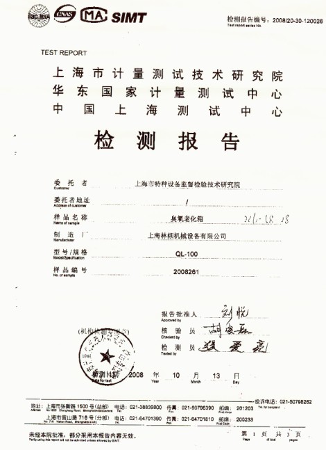 08年8月份,上海市特種設備監督檢驗技術研究院在經過眾多篩選后最終選擇林頻,與我司正式簽約一臺型號為QL-100的臭氧老化試驗箱,在出廠前嚴格把關,并已通過上海計量院第三方檢測合格,現已驗收合格并已成功交付使用.因為我們專業,所以值得信賴! 林頻全體人員歡迎您的咨詢!TEL:024-83503936 31314378 http://m.hzcables.com.cn