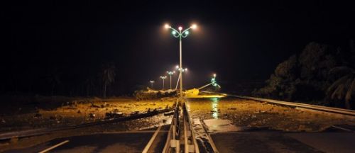 10月18日,海南東線高速公路部分路燈被沖到路面的泥石流損毀。當日22時28分,海南東線高速178公里處附近的一處山體再次發生泥石流,泥石流沖到高速公路路面,并壓毀一輛汽車。